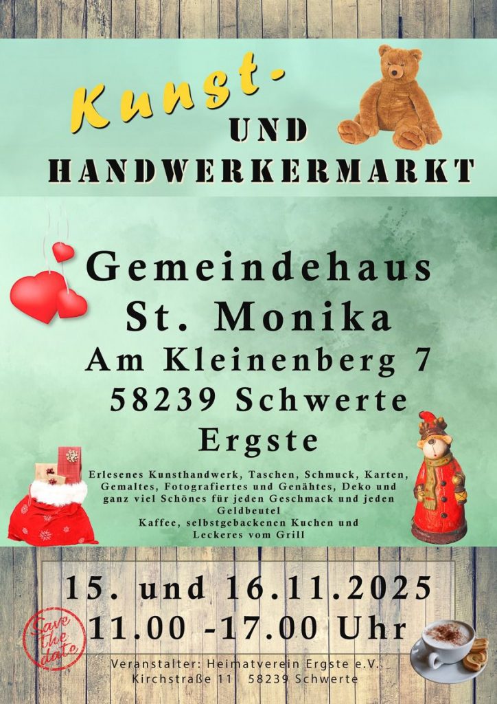 - Hobbykünstler- und Kunsthandwerkermarkt im Gemeindehaus St. Monika in Schwerte-Ergste